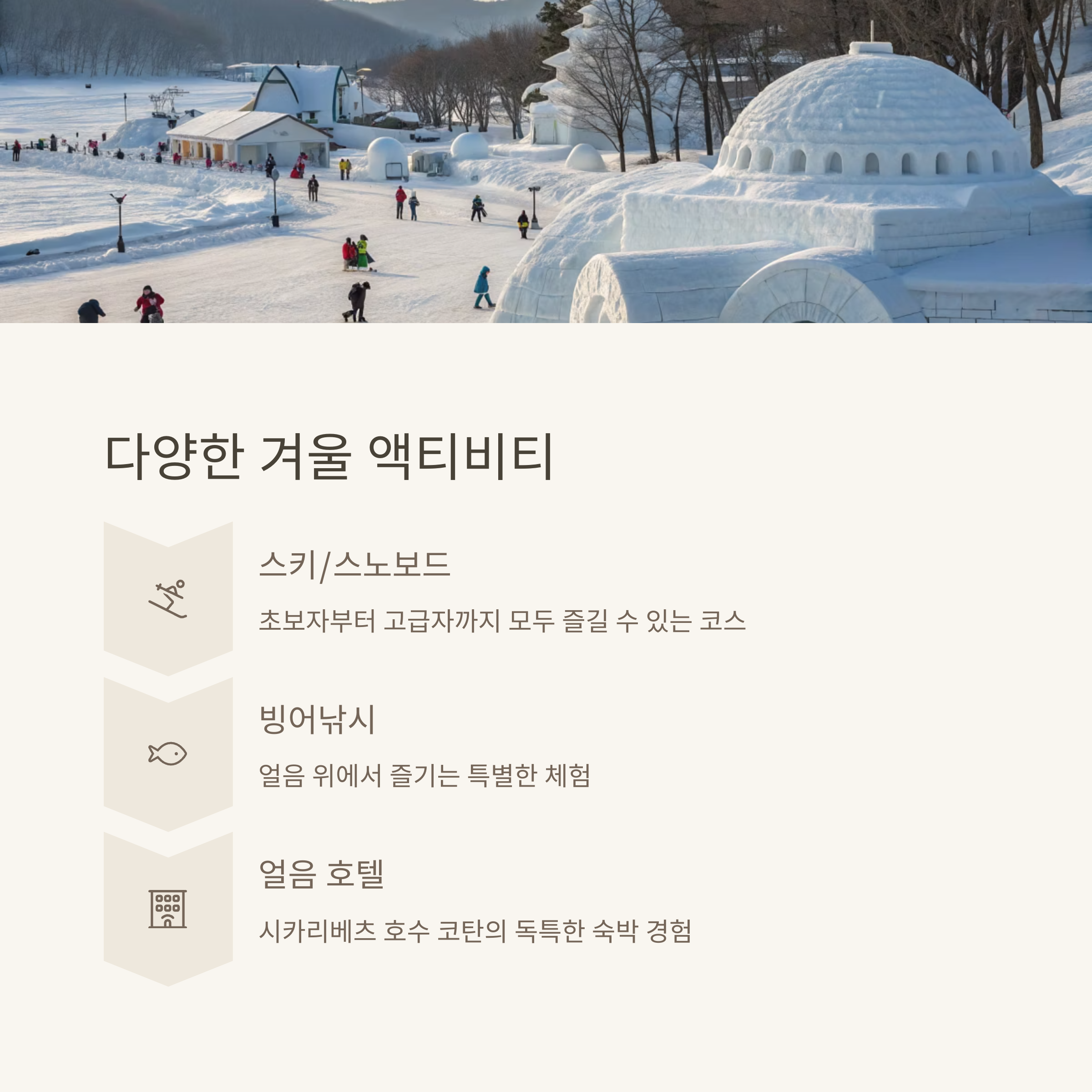 | 눈 축제 | 설경 감상 | 겨울 액티비티 |