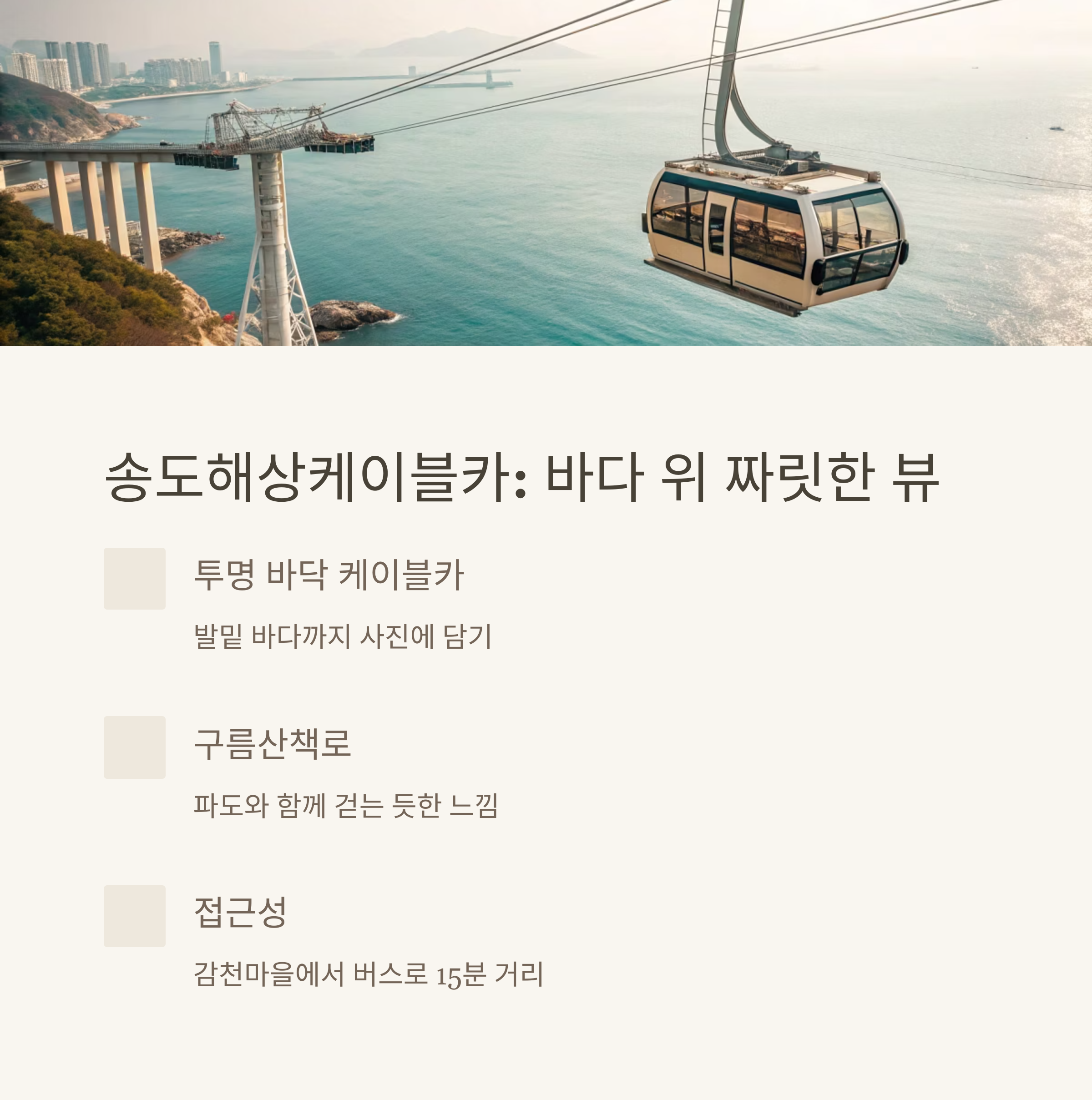 | 송도케이블카 | 해상 뷰 | 투명 바닥 포토 | 오전~오후 |