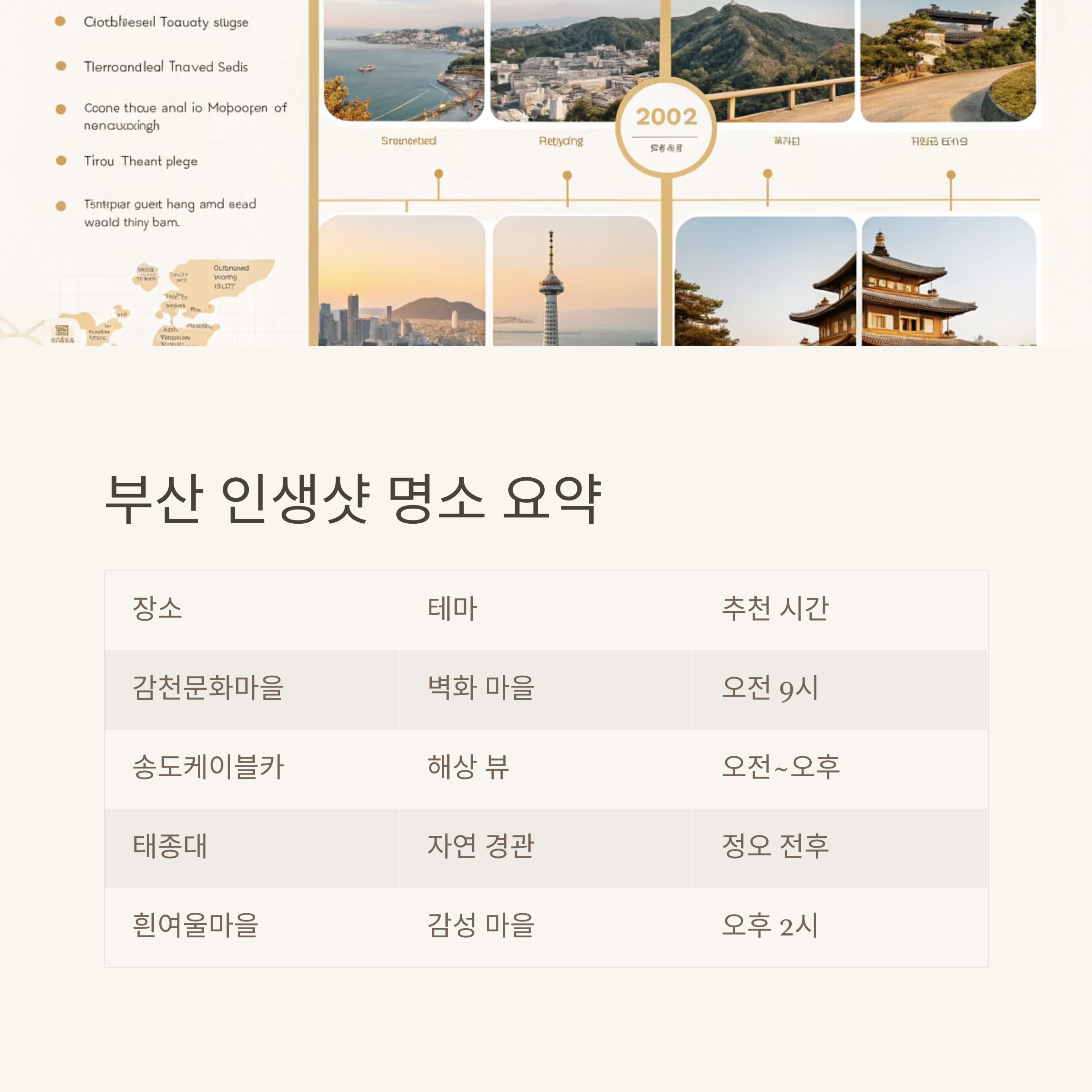 부산 당일치기 인생샷 명소 요약표