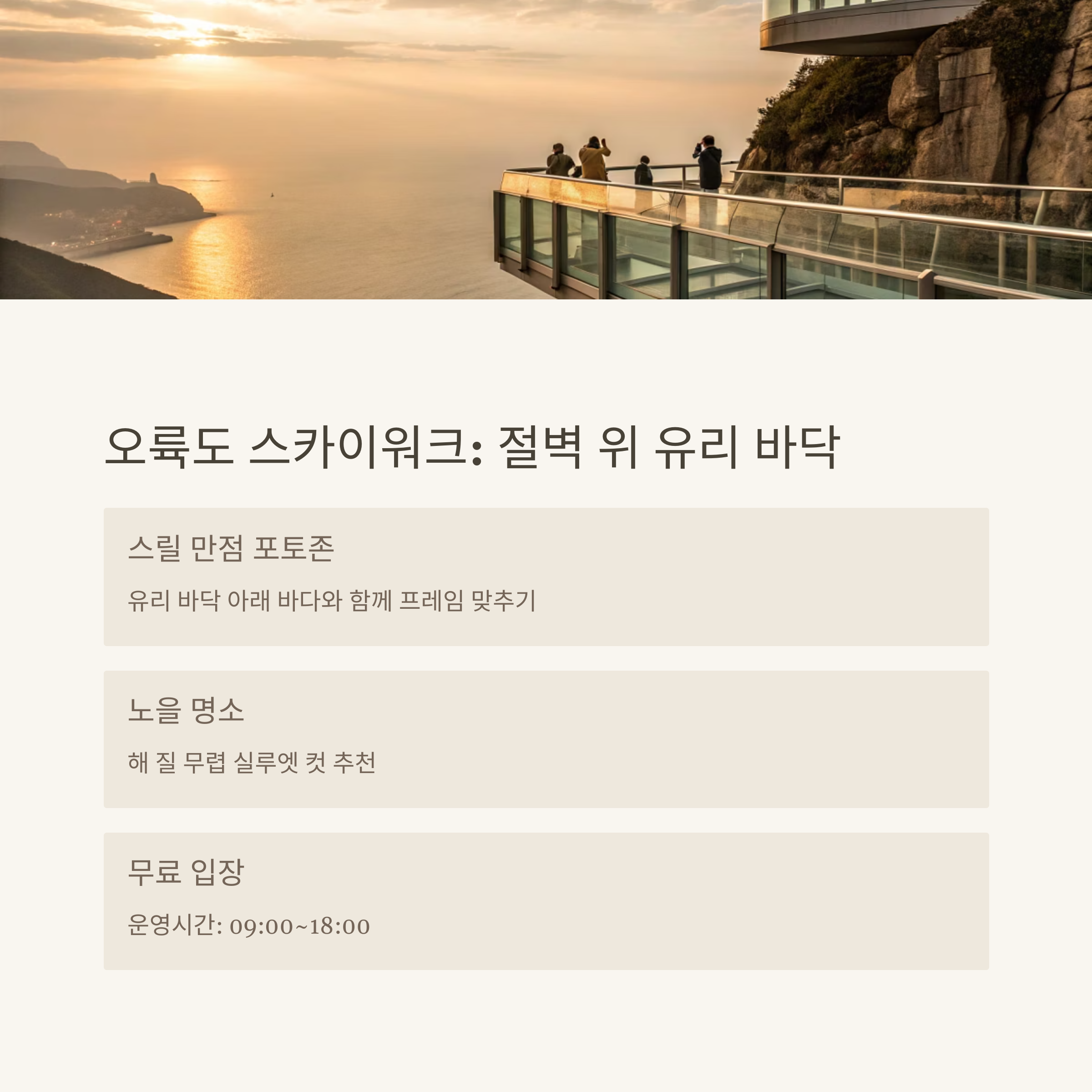 | 오륙도 | 스릴+뷰 | 유리 바닥 전망 | 오후 5~6시 |