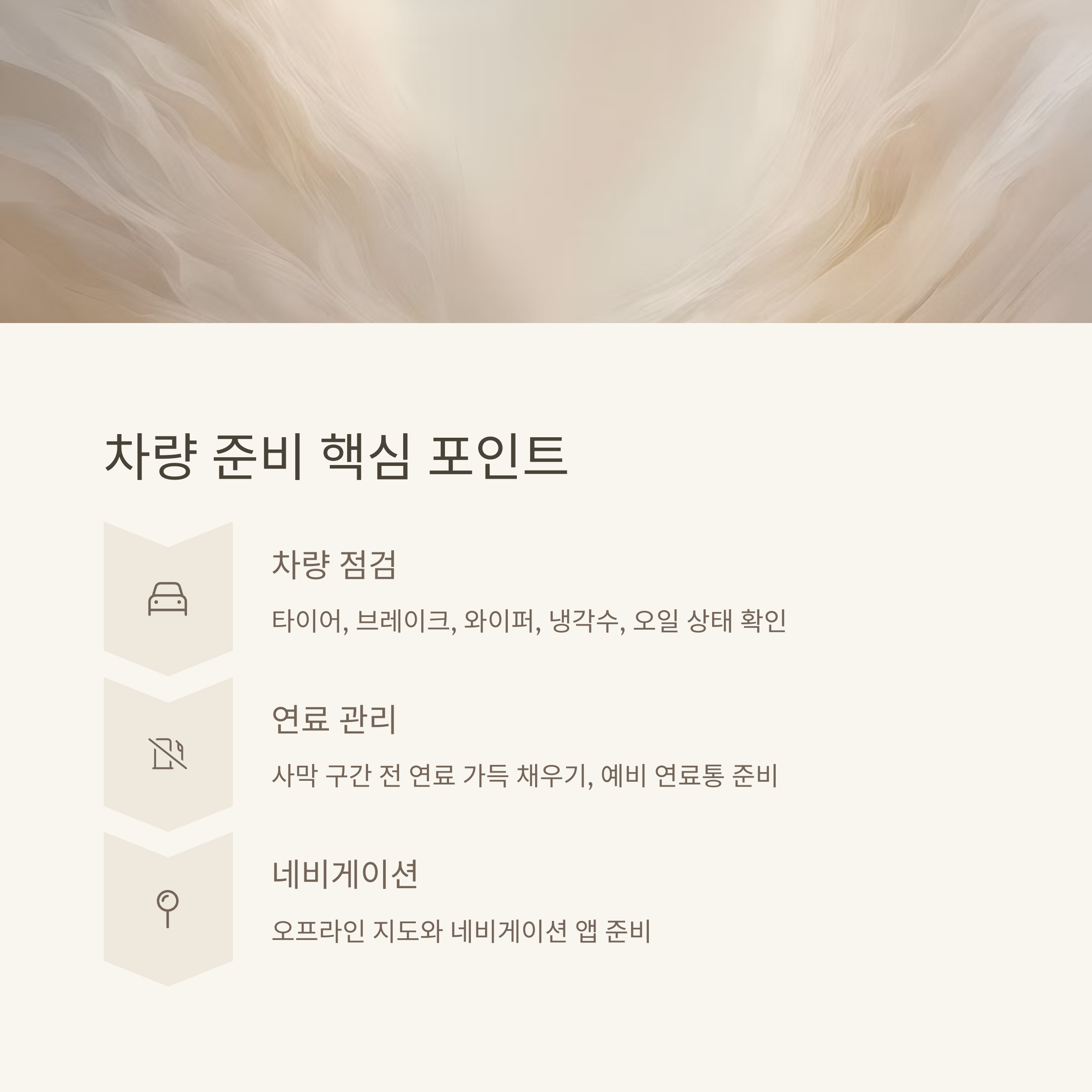 차량 점검과 연료 확인도 매우 중요합니다. 렌터카를 이용하는 경우 타이어 상태, 브레이크 작동, 와이퍼, 냉각수 및 오일 상태까지 점검해야 하며, 장거리 주행에 대비한 오프라인 지도와 네비게이션도 준비해 두는 것이 좋습니다. 특히 사막 구간이나 한적한 해안 도로에서는 주유소가 드물기 때문에 출발 전 반드시 연료를 가득 채우고 예비 연료통을 준비해 두는 것이 안전에 도움이 됩니다. 또한 선크림, 선글라스, 모자 등 햇빛 차단 용품과 라면포트, 아이스박스 등도 여정 중 큰 역할을 해줍니다.