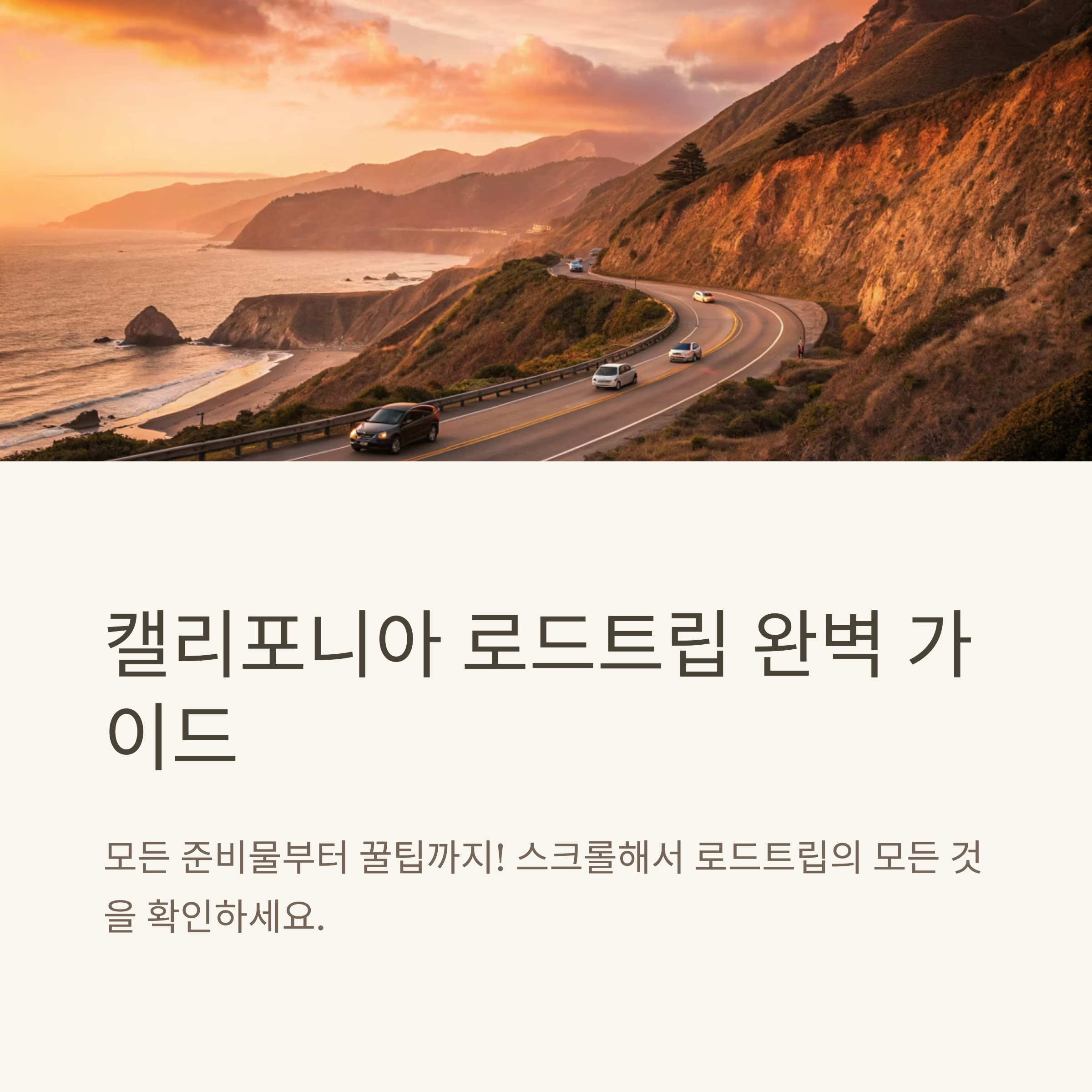 미국 캘리포니아 로드트립은 자유롭고 아름다운 풍경 속에서 힐링할 수 있는 매력적인 여행 코스입니다. 특히 하이웨이 1을 따라 달리는 길, 빅서(Big Sur)의 드라마틱한 해안 절벽, 요세미티 국립공원의 웅장한 자연은 평생 기억에 남을 장면들을 선사합니다. 하지만 장거리 운전과 환경 변화에 대비하지 않으면 피곤함과 불편함을 느끼기 쉬운데요. 철저한 준비와 체크리스트를 통해 보다 안전하고 쾌적한 여행을 즐길 수 있습니다. 본 글에서는 여권·비자부터 차량 준비, 안전용품, 날씨 대비 복장, 그리고 국립공원 패스, 추천 코스, 숙소 예약 팁까지 세세하게 알려드립니다. 단순한 리스트가 아니라 실전에서 바로 활용 가능한 꿀팁 중심으로 구성했으니, 여행 전 꼭 한 번 정독하시는 것을 추천드려요. 또한 사막구간 주행 시 주유소 부족, 급격한 기온 변화, 속도 제한 등 실수하기 쉬운 포인트들도 함께 체크해드립니다. 이 글 하나로 여러분의 로드트립이 더 안전하고 특별한 추억으로 남을 수 있도록 도와드릴게요. 지금 바로 확인해보세요!